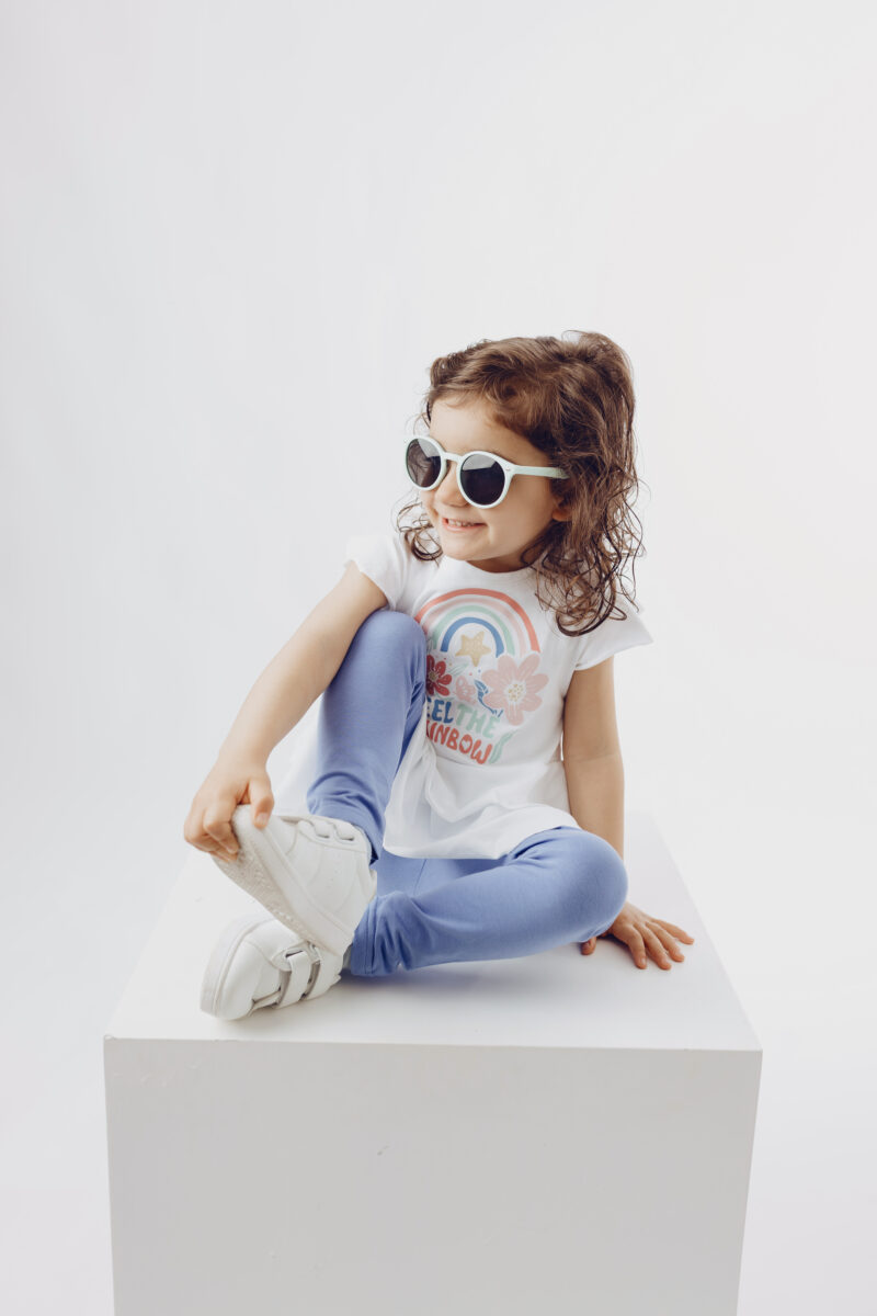 O Conjunto Rainbow é feito com 95% algodão e 5% elastano — ideal para dias cheios de alegria e movimento.